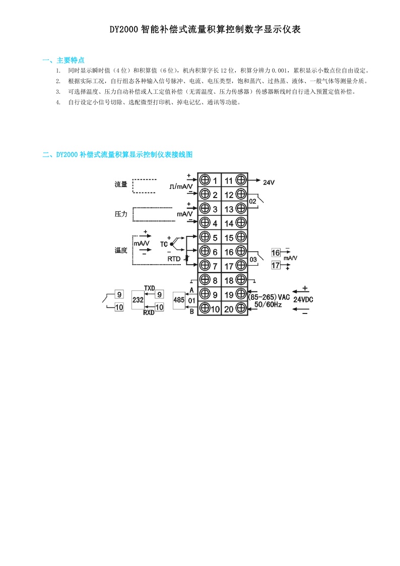 DY2000(L)智能補償式流量積算控制數(shù)字顯示儀表