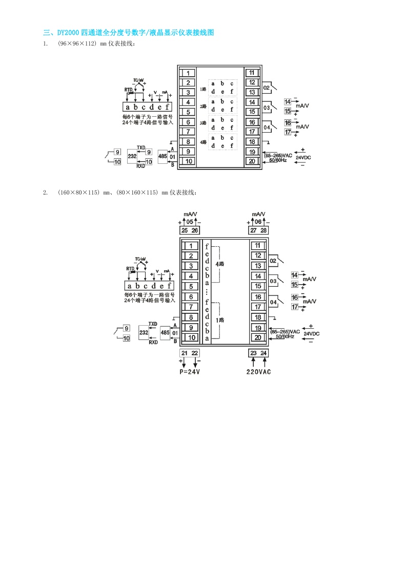 DY2000(FE)四通道全分度號數(shù)字/液晶顯示儀表
